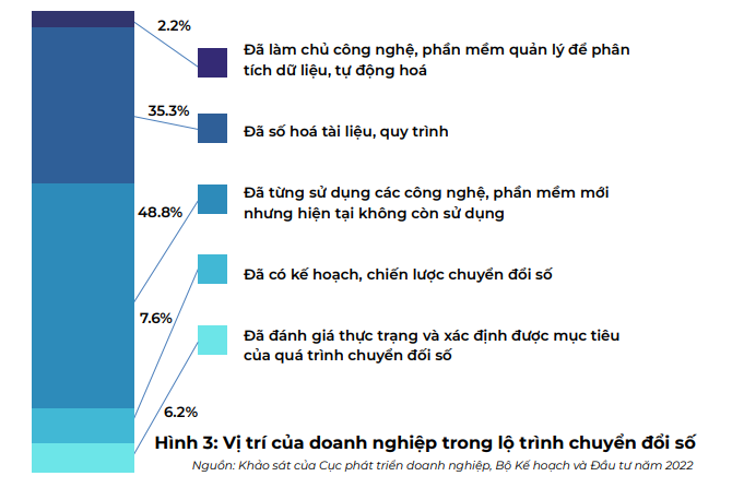 Trong lộ trình chuyển đổi số, chỉ một tỷ lệ nhỏ (2,2%) các doanh nghiệp đã làm chủ công nghệ, phần mềm quản lý để phân tích dữ liệu, đưa ra các quyết định trong sản xuất kinh doanh.