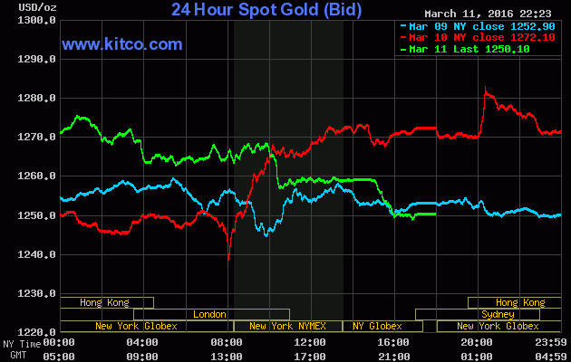 Tương tự, tại thị trường Châu Á, giá vàng giao ngay Kitco cũng đang đứng ở $1.250,10/oz.