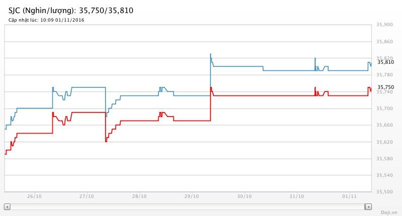 Trước đó, trong thứ Sáu, giá vàng lên đỉnh kể từ ngày 3/10, sau thông tin Giám đốc FBI tuyên bố mở lại cuộc điều tra nhằm vào bê bối email của ứng viên Tổng thống Mỹ Hillary Clinton sau khi vụ việc xuất hiện tình tiết mới.