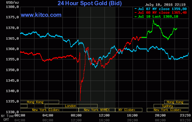 Còn trên phương thức giao dịch điện tử, tính đến thời điểm 9h19’ sáng nay 11/7 (giờ Việt Nam), giá vàng giao ngay Comex đang đứng ở $1.369,76/oz.