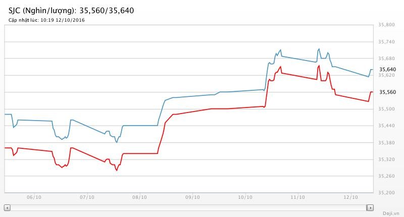 Tương tự, tại các đại lý của Doji, giá vàng miếng SJC cũng được Tập đoàn điều chỉnh tăng 40 nghìn đồng mỗi lượng chiều mua và 20 nghìn đồng mỗi lượng chiều bán lên 35,56 – 35,64 triệu đồng/lượng (MV-BR) đối với giao dịch lẻ; và đắt hơn 10 nghìn đồng chiều mua, đồng thời rẻ hơn 10 nghìn đồng chiều bán đối với giao dịch buôn ở thị trường Hà Nội. Hiện, doãng chênh lệch 2 chiều mua - bán ở Doji là 80 nghìn đồng/lượng.
