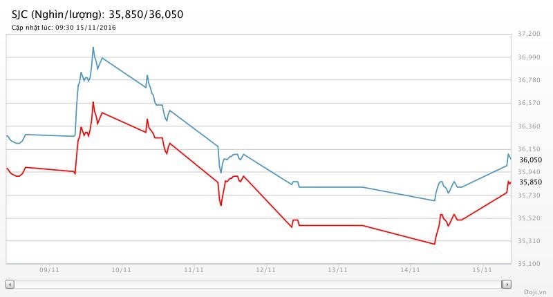 Mạnh hơn, tại các đại lý của Doji, giá vàng miếng SJC được Tập đoàn điều chỉnh tăng 350 nghìn đồng chiều mua và 250 nghìn đồng chiều bán lên yết ở 35,85 – 36,05 triệu đồng/lượng (MV-BR) đối với giao dịch lẻ; và đắt hơn 10 nghìn đồng chiều mua, đồng thời rẻ hơn 10 nghìn đồng chiều bán đối với giao dịch buôn ở thị trường Hà Nội. Hiện, doãng chênh lệch 2 chiều mua - bán ở Doji là 200 nghìn đồng/lượng.