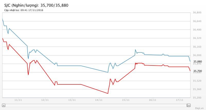 Tại thị trường trong nước, mở cửa phiên giao dịch sáng nay (Thứ Năm ngày 17/11), giá vàng SJC đang trôi thấp.