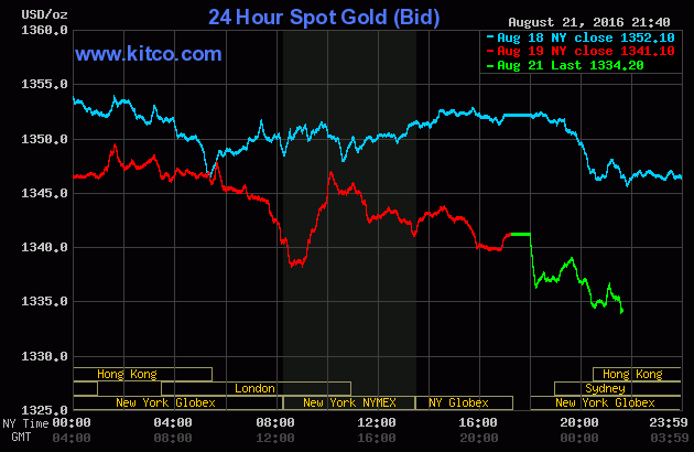 Trên phương thức giao dịch điện tử, tính đến thời điểm 8h46’ sáng nay (giờ Việt Nam), giá vàng giao ngay Comex đang đứng ở $1.334,46/oz.