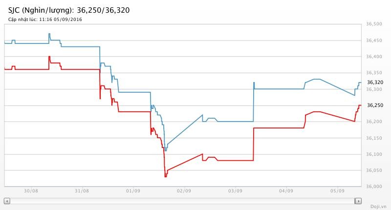 Trong khi, tại các đại lý của Doji, giá vàng miếng SJC cũng được Tập đoàn điều chỉnh tăng 20 nghìn đồng chiều mua nhưng lại giảm 10 nghìn đồng chiều bán về yết ở 36,25 – 36,32 triệu đồng/lượng (MV-BR) đối với giao dịch lẻ; và đắt hơn 10 nghìn đồng chiều mua, đồng thời rẻ hơn 10 nghìn đồng chiều bán đối với giao dịch buôn ở thị trường Hà Nội. Hiện, doãng chênh lệch 2 chiều mua - bán ở Doji là 70 nghìn đồng/lượng.