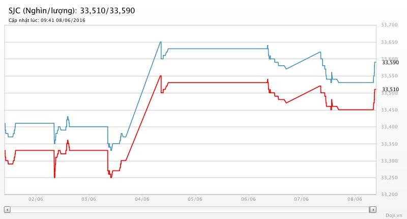 Tương tự, tại các đại lý của Doji, giá vàng miếng SJC cũng được Tập đoàn điều chỉnh tăng 60 nghìn đồng mỗi chiều lên yết ở 33,51 – 33,59 triệu đồng/lượng (MV-BR) đối với giao dịch lẻ; và đắt hơn 10 nghìn đồng chiều mua, đồng thời rẻ hơn 10 nghìn đồng chiều bán đối với giao dịch buôn ở thị trường Hà Nội. Hiện, doãng chênh lệch 2 chiều mua - bán ở Doji là 80 nghìn đồng/lượng.