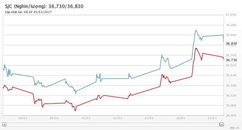 Bốn tuần qua, giá vàng liên tục tăng vì các tuyên bố và động thái của tân Tổng thống Mỹ Donald Trump. Ông đã quyết định rút Mỹ khỏi Hiệp định Đối tác xuyên Thái Bình Dương, tái đàm phán Hiệp định tự do thương mại Bắc Mỹ.