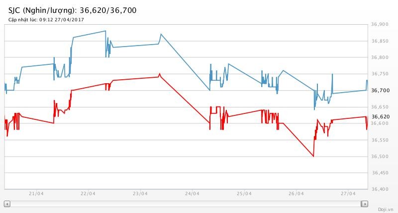 Tại các đại lý của Doji, giá vàng miếng SJC được tập đoàn này điều chỉnh tăng nhẹ 10 nghìn đồng lên yết ở 36,62 – 36,70 triệu đồng/lượng (MV-BR) đối với giao dịch lẻ; và đắt hơn 10 nghìn đồng chiều mua, đồng thời rẻ hơn 10 nghìn đồng chiều bán đối với giao dịch buôn ở thị trường Hà Nội. Hiện, doãng chênh lệch 2 chiều mua - bán ở Doji hiện là 80 nghìn đồng/lượng.