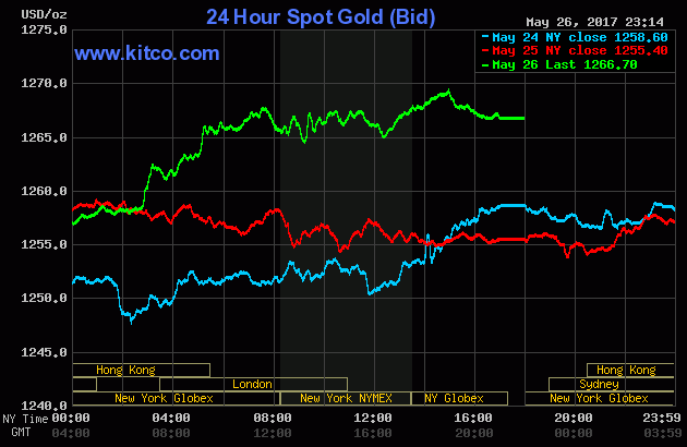 Cùng lúc, tại thị trường châu Á, giá vàng miếng giao ngay trên sàn Kitco cũng được yết ở $1.266,70/oz.
