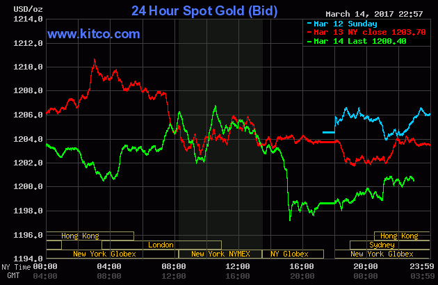Cùng lúc, tại thị trường châu Á, giá vàng miếng giao ngay trên sàn Kitco cũng được yết ở $1.200,40/oz.