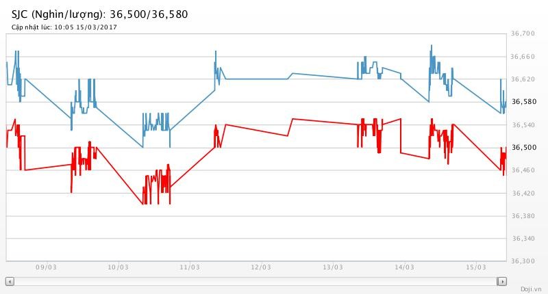 Tương tự, tại các đại lý của Doji, giá vàng miếng SJC chỉ được tập đoàn này điều chỉnh giảm 40 nghìn đồng mỗi chiều về yết ở 36,50 – 36,58 triệu đồng/lượng (MV-BR) đối với giao dịch lẻ; và đắt hơn 10 nghìn đồng chiều mua, đồng thời rẻ hơn 10 nghìn đồng chiều bán đối với giao dịch buôn ở thị trường Hà Nội. Theo đó, doãng chênh lệch 2 chiều mua - bán ở Doji đang là 80 nghìn đồng/lượng.