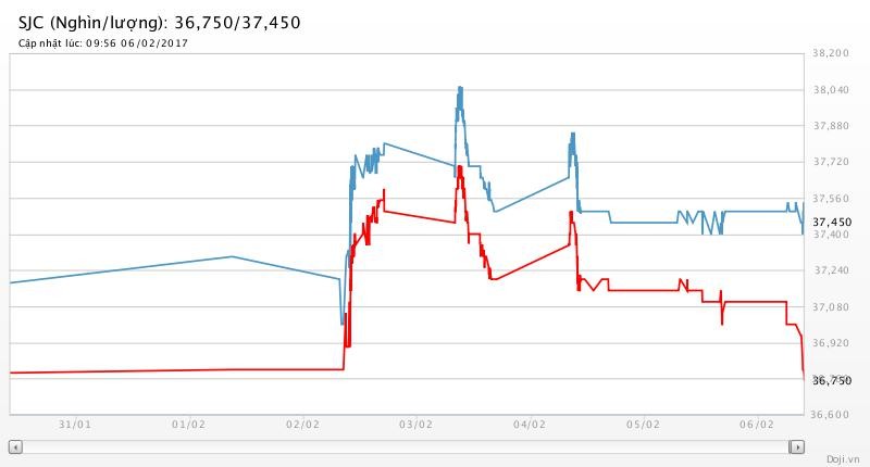 Tương tự, tại các đại lý của Doji, giá vàng miếng SJC cũng được tập đoàn này điều chỉnh giảm mạnh 350 nghìn đồng chiều mua và 50 nghìn đồng chiều bán về yết ở ở 36,75 – 37,45 triệu đồng/lượng (MV-BR) đối với giao dịch lẻ; và đắt hơn 10 nghìn đồng chiều mua, đồng thời rẻ hơn 10 nghìn đồng chiều bán đối với giao dịch buôn ở thị trường Hà Nội. Hiện, doãng chênh lệch 2 chiều mua - bán ở Doji là 300 nghìn đồng/lượng.