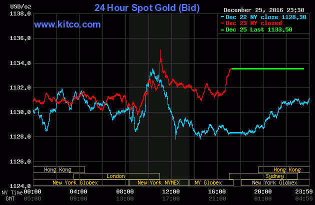 Trên phương thức giao dịch điện tử, tính đến thời điểm 11h30’ trưa nay (giờ Việt Nam), giá vàng giao ngay Comex đang đứng ở $1.133,45/oz.