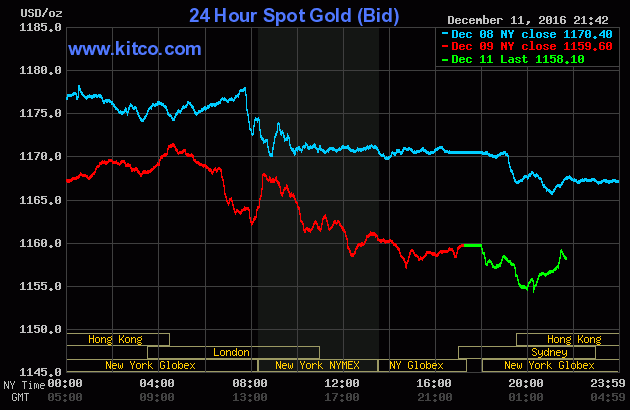 Cùng lúc, tại thị trường châu Á, giá vàng miếng giao ngay trên sàn Kitco cũng được yết ở $1.158,10/oz.