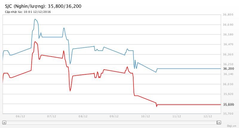 Trong khi, tại các đại lý của Doji, giá vàng miếng SJC lại được Tập đoàn này điều chỉnh giữ nguyên ở mức 35,80 – 36,20 triệu đồng/lượng (MV-BR) đối với giao dịch lẻ; và đắt hơn 10 nghìn đồng chiều mua, đồng thời rẻ hơn 10 nghìn đồng chiều bán đối với giao dịch buôn ở thị trường Hà Nội. Hiện, doãng chênh lệch 2 chiều mua - bán ở Doji là 400 nghìn đồng/lượng.