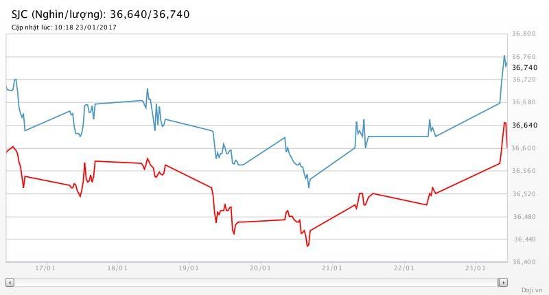 Tương tự, tại các đại lý của Doji, giá vàng miếng SJC cũng được tập đoàn này điều chỉnh giảm 90 nghìn đồng chiều mua và 70 nghìn đồng chiều bán về 36,64 – 36,74 triệu đồng/lượng (MV-BR) đối với giao dịch lẻ; và đắt hơn 10 nghìn đồng chiều mua, đồng thời rẻ hơn 10 nghìn đồng chiều bán đối với giao dịch buôn ở thị trường Hà Nội. Hiện, doãng chênh lệch 2 chiều mua - bán ở Doji là 100 nghìn đồng/lượng.