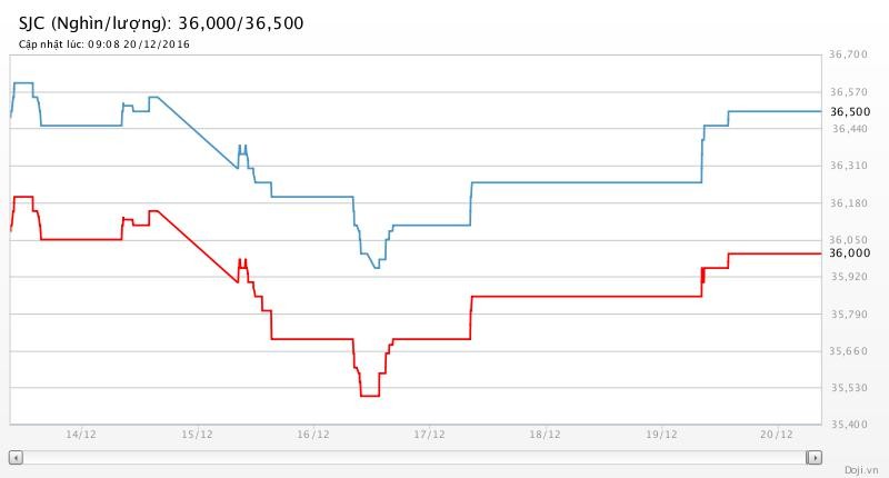 Tương tự, tại các đại lý của Doji, giá vàng miếng SJC cũng được Tập đoàn này điều chỉnh tăng 50 nghìn đồng lên niêm yết ở mức 36,00 – 36,50 triệu đồng/lượng (MV-BR) đối với giao dịch lẻ; và đắt hơn 10 nghìn đồng chiều mua, đồng thời rẻ hơn 10 nghìn đồng chiều bán đối với giao dịch buôn ở thị trường Hà Nội. Hiện, doãng chênh lệch 2 chiều mua - bán ở Doji là 500 nghìn đồng/lượng.