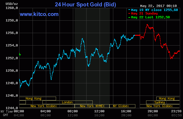 Chốt phiên giao dịch cuối tuần trước (Thứ Sáu ngày 19/5), giá vàng giao tháng Sáu trên sàn Comex tại Sở Giao dịch New York Mercantile khẽ nhích 80 cents (+0,1%) lên chốt tại $1.253,60/oz. Tính chung cả tuần, giá vàng đã tăng tổng cộng 2,1% - mạnh nhất kể từ ngày 13/4, căn cứ theo dữ liệu của FactSet.