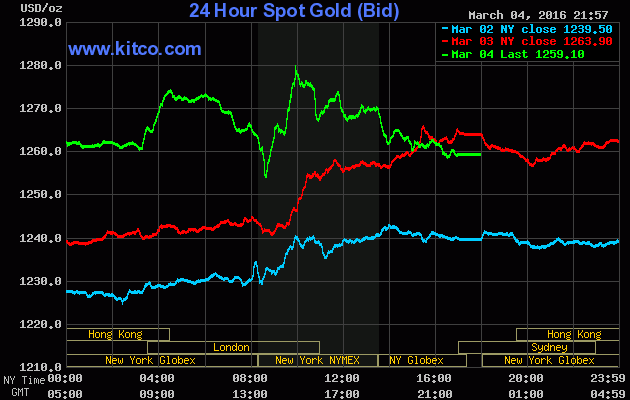 Tương tự, tại thị trường Châu Á, giá vàng giao ngay Kitco cũng đang đứng ở $1.259,10/oz.
