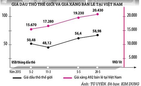 - Từ ngày 21-5, Bộ Tài chính đã điều chỉnh các mức thuế nhập khẩu xăng dầu ở các mức khác nhau. Xăng RON 92/95, xăng sinh học (E5, E10) giữ nguyên mức 20%. Mặt hàng dầu hỏa giảm từ 20% xuống 13%; dầu mazut giảm từ 13% xuống 10%; dầu diesel giảm từ 12% xuống 10%.