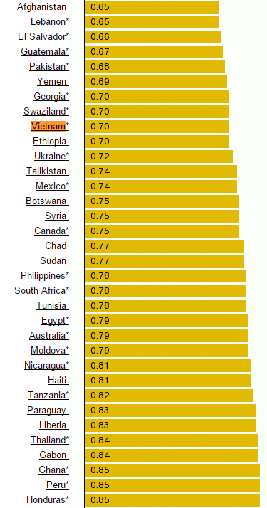 So với các nước phát triển trên thế giới, giá xăng Việt Nam chỉ cao hơn Hoa Kỳ (0,56 USD/lít); thấp hơn Anh, Đức, Canada, New Zealand…