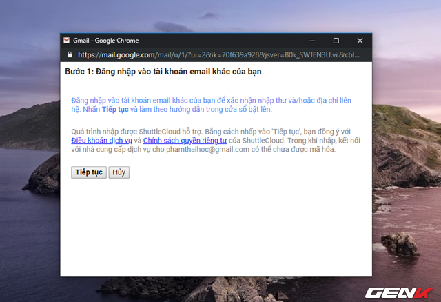 Nhập địa chỉ Gmail mới vào và làm theo các bước xác thực để hoàn tất việc thiết lập chuyển tiếp các mail mới được gửi từ Gmail cũ