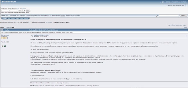 Bên cạnh đó, bài viết cũng đề cập đến việc công dân Nga được cho là quản trị viên của BTC-E bị bắt hôm 27/7. Họ khẳng định, "Alexander Vinnik chưa bao giờ là người đứng đầu hoặc là nhân viên của chúng tôi."