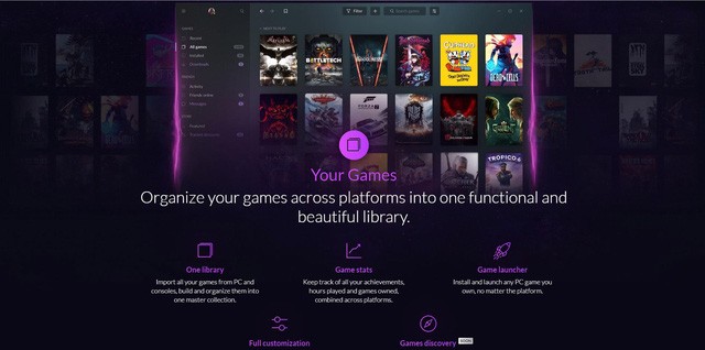 Game thủ cũng có thể thêm các tựa game được tải từ bên ngoài các nền tảng hỗ trợ, sau đó sắp xếp chúng trong thư viện thông qua các thẻ, bộ lọc và tùy chọn sắp xếp tùy chỉnh. Đối với các tựa game trên PC, game thủ có thể cài đặt và khởi chạy các tựa game trực tiếp thông qua GOG Galaxy 2.0, mặc dù các tính năng như lưu trữ đám mây và cập nhật tự động sẽ yêu cầu các phần mềm gốc phải hoạt động.