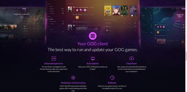 Là một trong số những nền tảng cung cấp game bản quyền cho hàng triệu game thủ trên PC, GOG cũng có một phần mềm giúp người dùng có thể quản lý, cập nhật những tựa game không có DRM mang trên GOG Galaxy. Tuy không thể cạnh tranh với Steam nhưng GOG đang có kế hoạch lớn cho bản phát hành 2.0 của GOG Galaxy - một bước nữa cho nỗ lực của CD Projekt ngoài việc bán các tựa game cũ hay nhất trên PC. Phiên bản GOG Galaxy mới hứu hẹn sẽ là một phần mềm quản lý thư việc game hoàn chỉnh cho phép game thủ có thể nhập dữ liệu và quản lý các tựa game của mình từ mọi nền tảng, thậm chí cả game từ Console.
