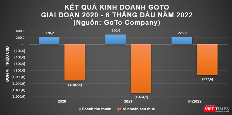Tuy nhiên, trái với sự kỳ vọng, trong báo cáo tài chính nửa đầu năm 2022, GoTo đang phải chịu khoản lỗ ròng lên tới 937,6 triệu USD, gấp 2,1 lần so với cùng kỳ năm trước. Trong khi đó, doanh thu của tập đoàn lại tăng mạnh 73% so với nửa đầu năm 2021 lên 225 triệu USD. Điều này chứng tỏ công ty này đang phải đối mặt với nhiều thách thức trong việc kinh doanh sinh lời.