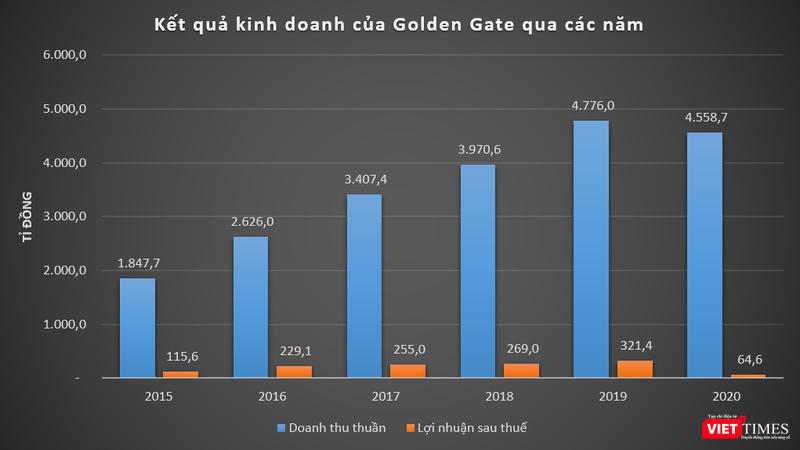 Năm 2020, Golden Gate báo lãi sau thuế 64,6 tỉ đồng, giảm 80% so với năm 2019 và chỉ hoàn thành 43% kế hoạch cả năm (150 tỉ đồng). Tính đến cuối năm, lợi nhuận sau thuế chưa phân phối của Golden Gate là 1.210 tỉ đồng.