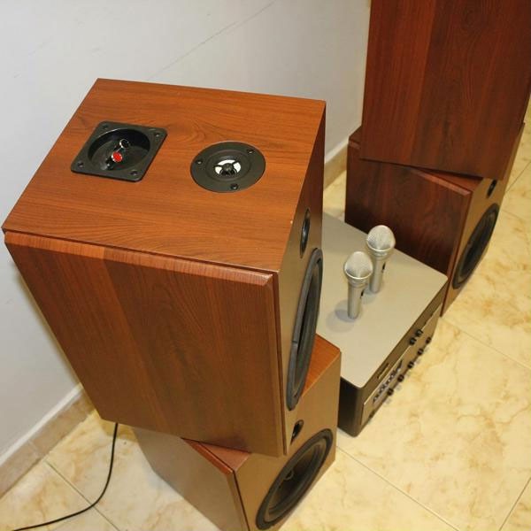 Giá bộ sản phẩm này là 10,5 triệu đồng, chưa tính công lắp đặt và được bảo hành 12 tháng. 4 chiếc loa của bộ sản phẩm là loại loa treo tường GoldSound V100 có công suất 100W. Mỗi cục loa đều có đủ loa bass và treble Hi-Fi tạo hiệu ứng âm thanh bass, tress và Hi-Fi trên từng điểm không gian trong phòng.