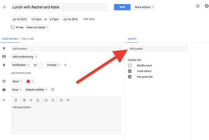 Nhờ tính năng chia sẻ của mình, Google Calendar có thể được coi là ứng dụng lịch số 1 cho quản lý lịch làm việc. Người dùng có thể invite đồng nghiệp, bạn bè hay người thân gia đình cùng tham gia sự kiện với mình qua thao tác đơn giản là thêm email của họ vào thanh “guests”. Nếu người chấp nhận lời mời cũng sử dụng Google Calendar, event sẽ hiện lên trong lịch của họ luôn. Dịch vụ của công ty tìm kiếm còn cho phép mời những người không có tài khoản G Suite, giúp họ xem hoặc chỉnh sửa toàn bộ lịch cũng như tạo lịch sau đó chia sẻ cho nhiều người khác nữa cùng xem và chỉnh sửa trên thiết bị của mình.