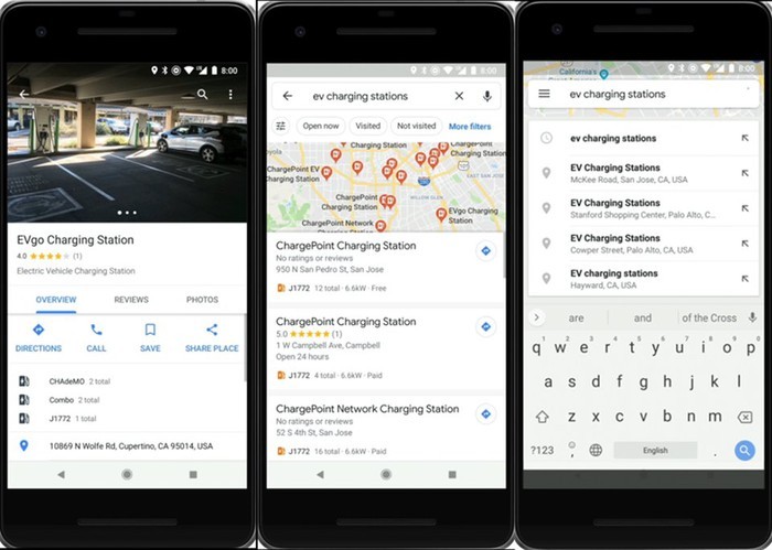Tuy Google Maps không hiển thị tất cả mọi trạm sạc cho xe điện nhưng hầu hết những trạm sạc của các công ty lớn đều có mặt trên bản đồ và thay đổi tùy vào thị trường ở từng quốc gia. Ví dụ như trên toàn cầu đều có thông tin về trạm của 2 hãng Tesla và ChargePoint. Nhưng tại Mỹ, bao gồm thêm các hãng Blink, EVgo và SemaConnect; ở Anh có Chargemaster và Pod Point và hy vọng sẽ kịp thời bổ sung thêm 2 hãng sạc EV khác là Ionity và Electrify America. Một ví dụ về trạm Pod Point được tìm kiếm ở Anh: