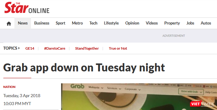 Không chỉ ở Việt Nam, tờ The Star Online của Malaysia cũng đăng tải thông tin về ứng dụng Grab tại Malaysia ngưng hoạt đoạt cùng thời điểm. Rắc rối tương tự cũng xảy ra tại Singapore và Philippines.