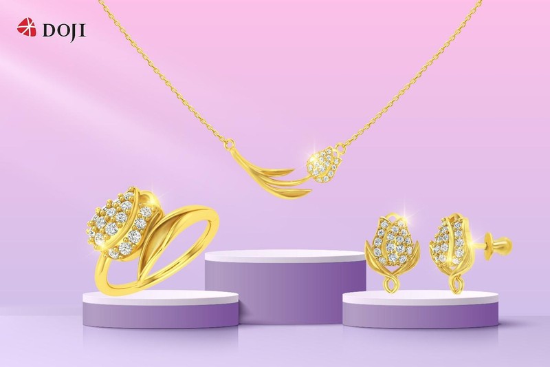 Mỗi thiết kế trong BST “Nữ Hoàng Mùa Xuân” góp phần tôn lên nét duyên thầm của người phụ nữ, toả sáng nhan sắc đương độ xuân thì ngọc ngà, quý phái và tràn đầy sức sống. Khách hàng cũng có thể lựa chọn các thiết kế Vàng 24K khác đang được ưa chuộng của DOJI như: BST “The Camellia” với nét đẹp thanh lịch, đoan trang hay BST “Nàng Thơ Vàng” duyên dáng và độc đáo với sự kết hợp Vàng 24K cùng chất liệu xà cừ.