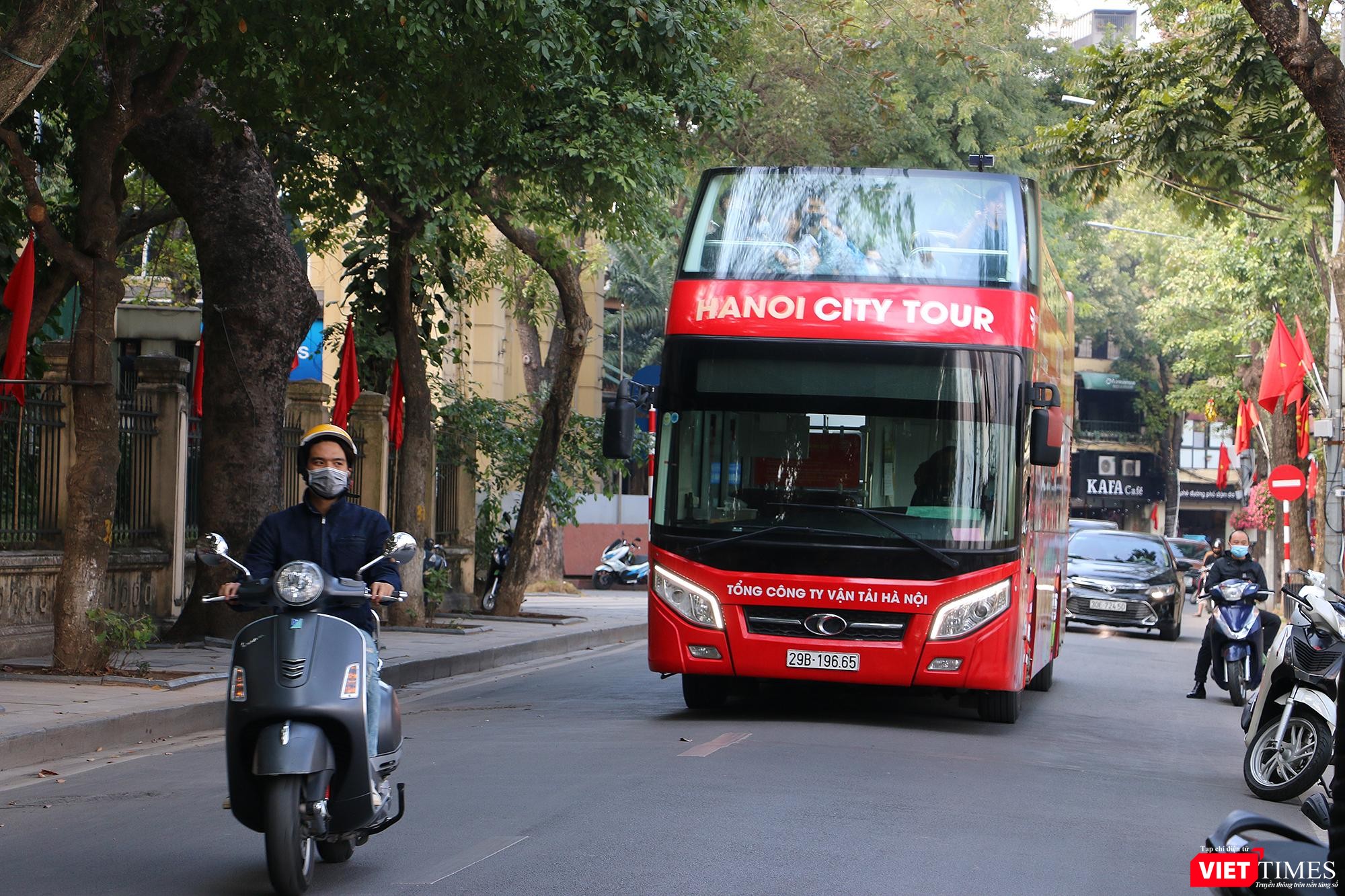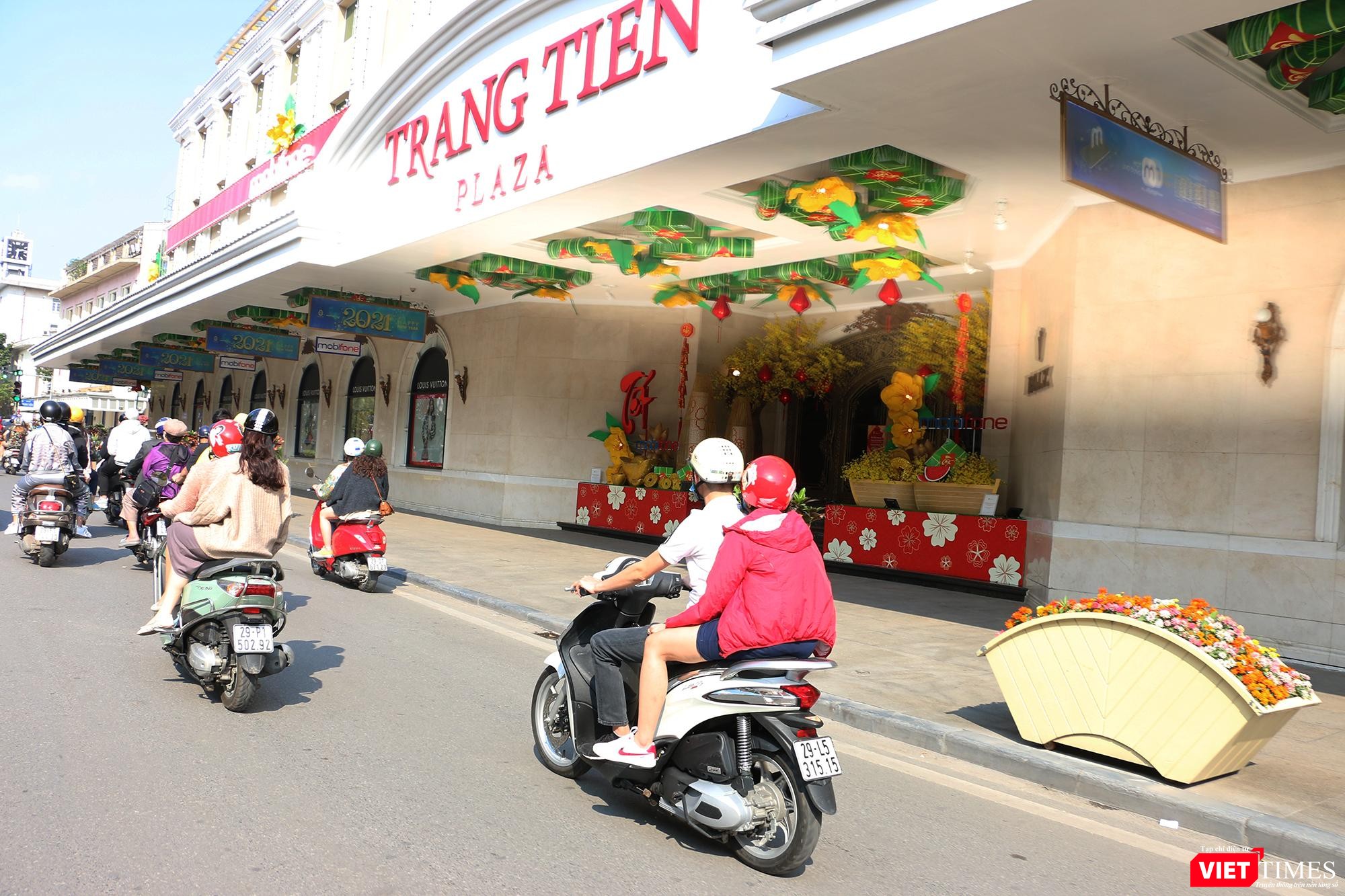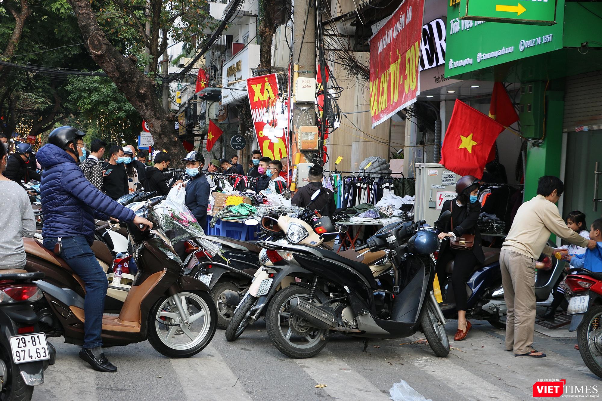 Dọc các tuyến phố từ hàng Đường đến chợ Đồng Xuân xe cộ đi lại tấp nập, có tình trạng tắc nghẽn nhẹ |