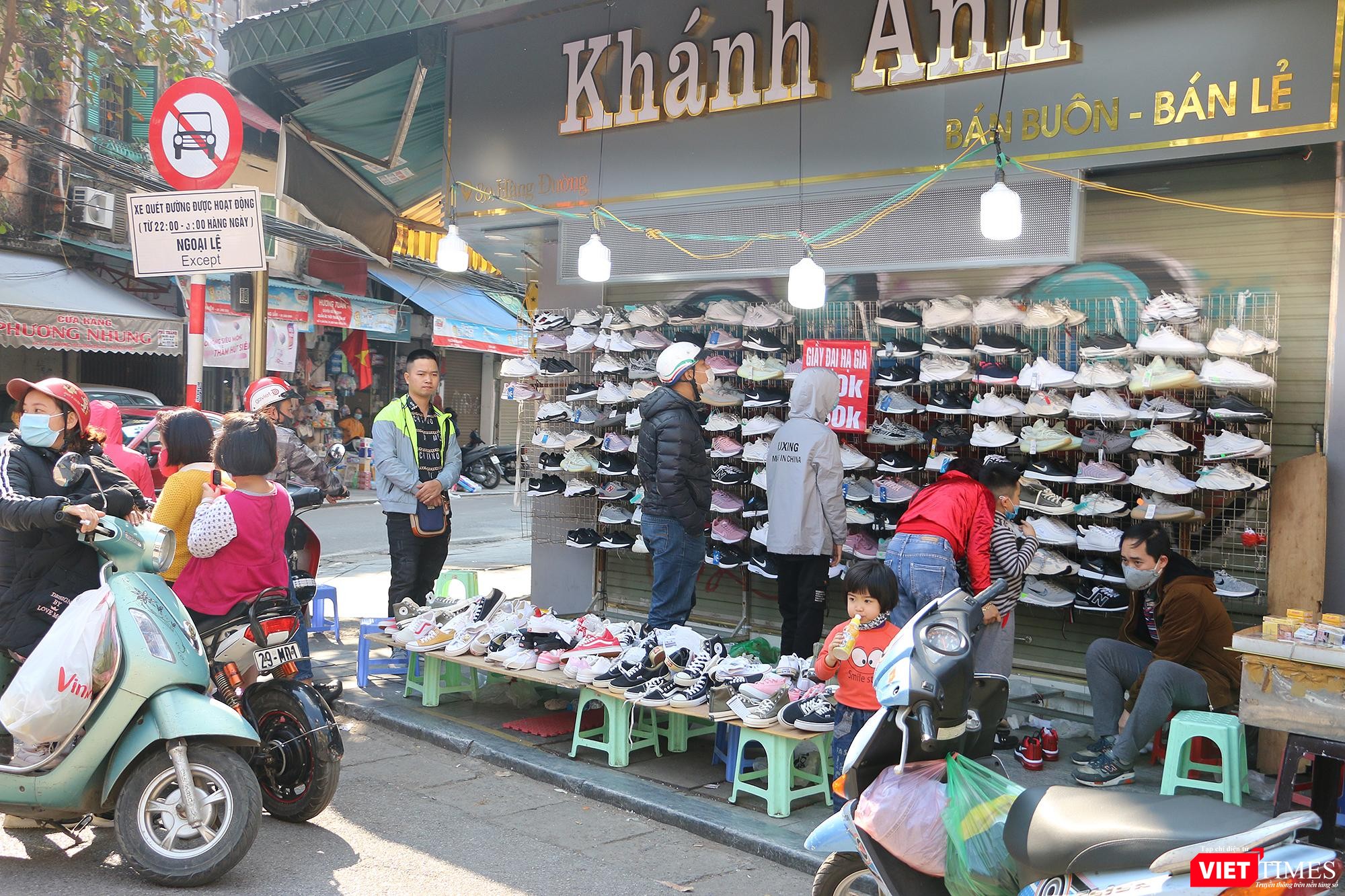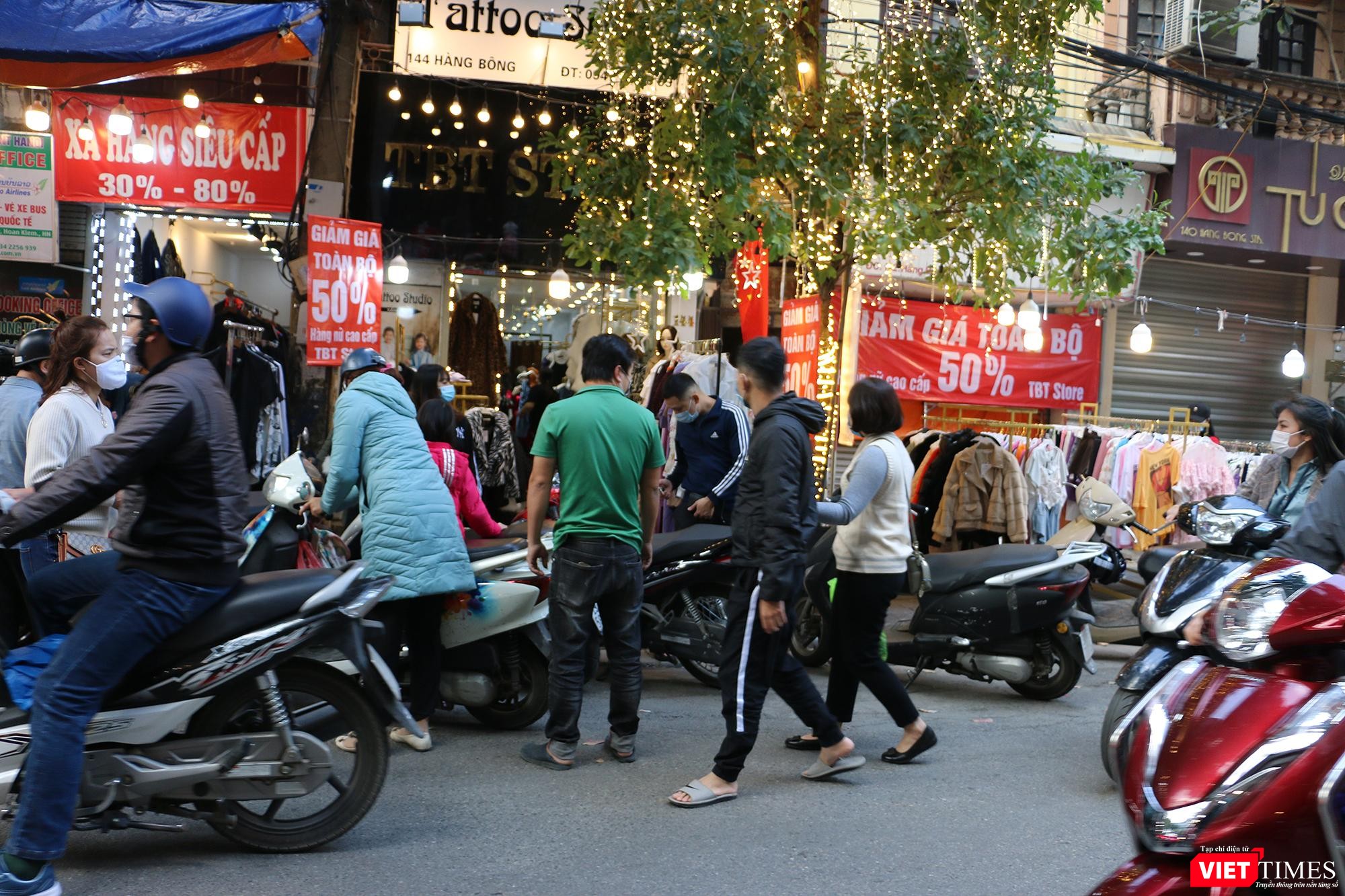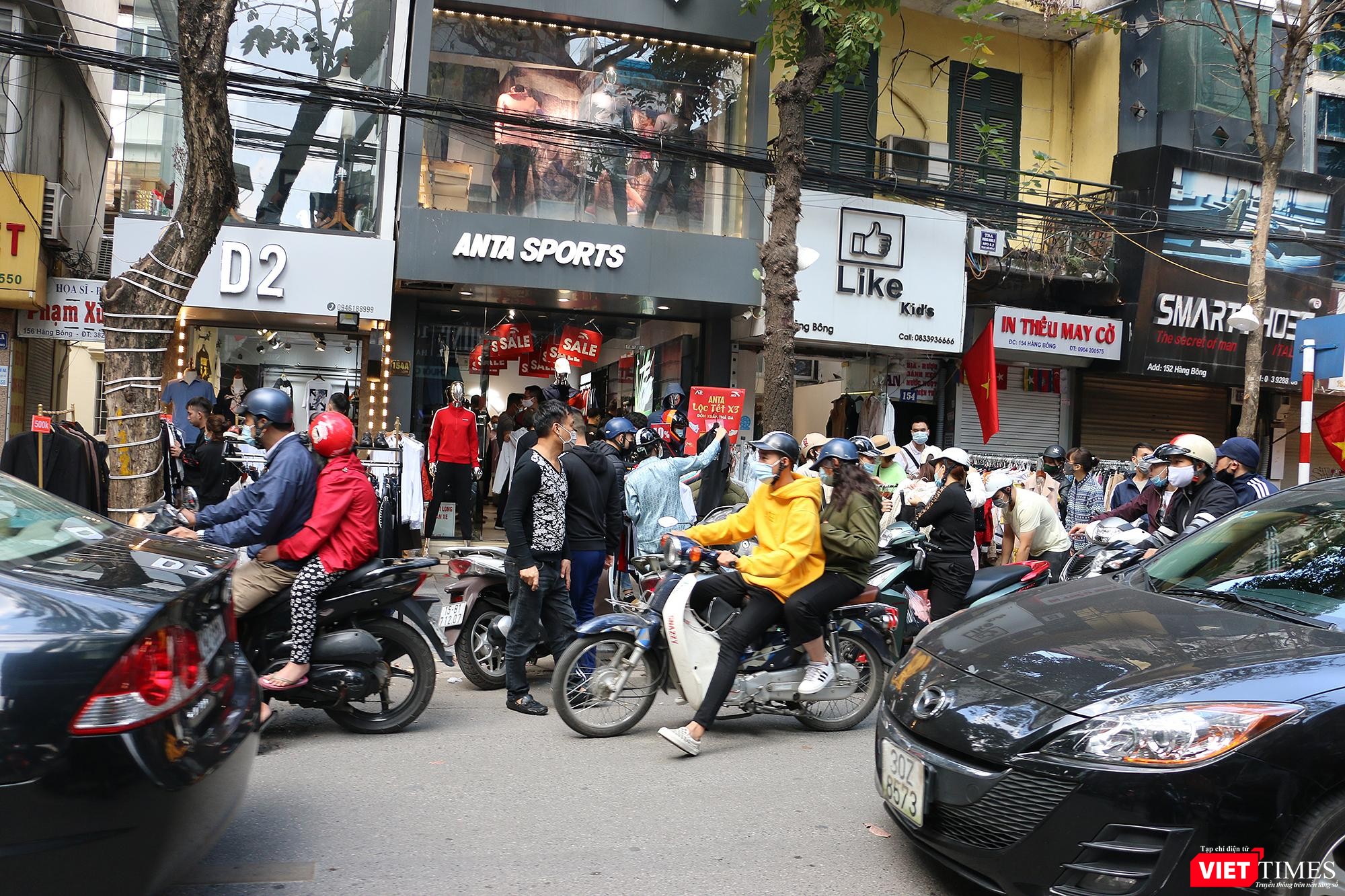 Khu vực phố Hàng Bông xảy ra tình trạng tắc nghẽn do các cửa hàng sale off quần áo, giày dép khiến nhiều du khách dừng lại mua |
