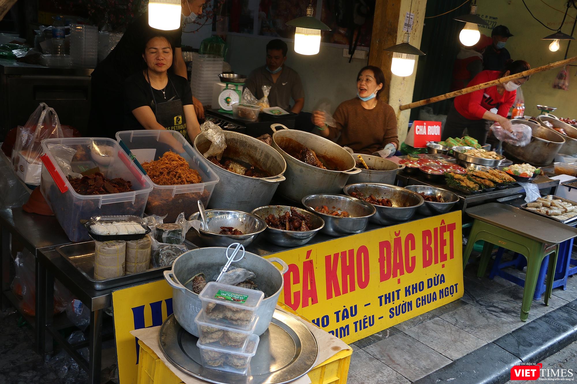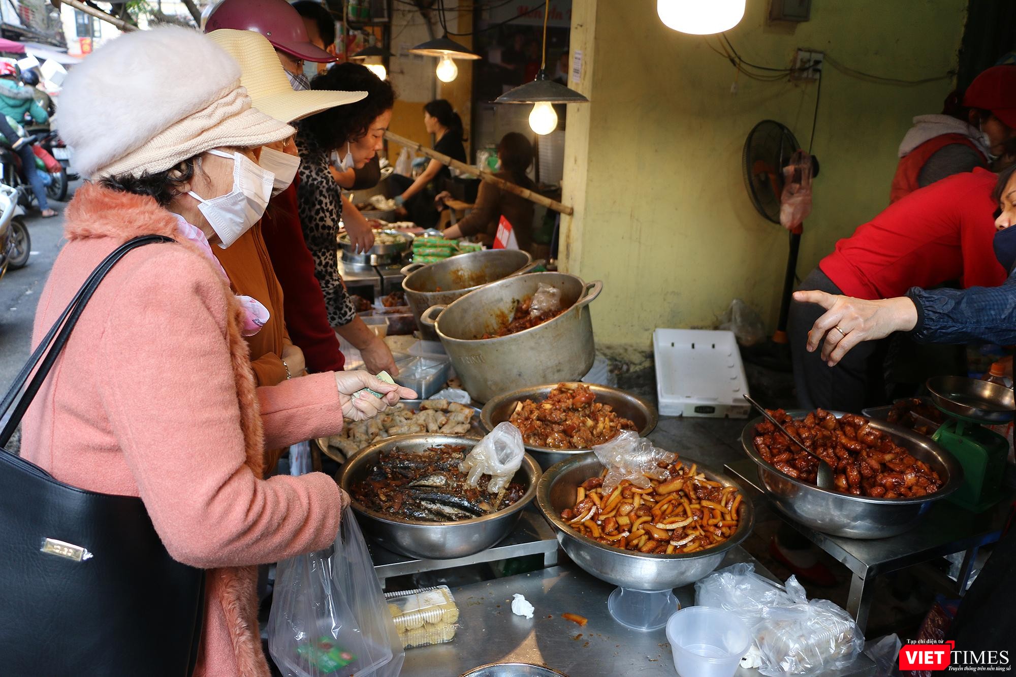 Tại chợ Gia Ngư, chợ đồ ăn nổi tiếng ở Hà Nội, khách hàng cũng tấp nập mua sắm thực phẩm chín cho dịp Tết |