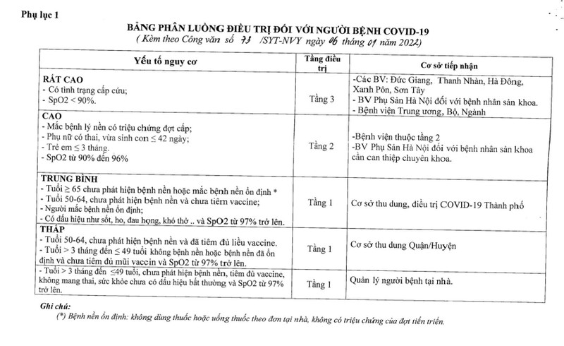 Bên cạnh đó, Sở Y tế Hà Nội cũng phân tầng điều trị đối với những trường hợp đặc biệt.