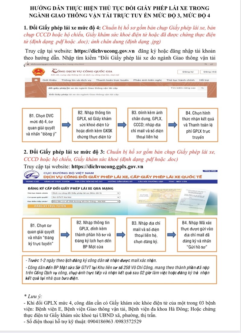 Mới đây, Sở Giao thông Vận tải và Sở Y tế Hà Nội vừa ban hành quy chế phối hợp tuyên truyền, hướng dẫn thực hiện dịch vụ công trực tuyến toàn trình đổi giấy phép lái xe trên Cổng dịch vụ công Quốc gia