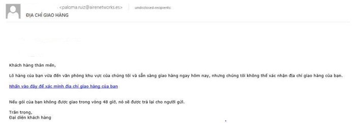Theo nhận định của chuyên gia Công ty , việc hacker tấn công một khách hàng của CyRadar là doanh nghiệp chuyển phát thông qua hình thức phát tán email cài mã độc đã bị phát hiện. Một lượng lớn email độc hại đã được gửi đến nhân viên của doanh nghiệp này với nội dung gây khá nhiều sự tò mò.