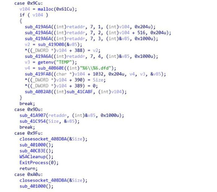 Hàm đợi lệnh thực thi từ máy chủ (Ảnh: CyRadar)