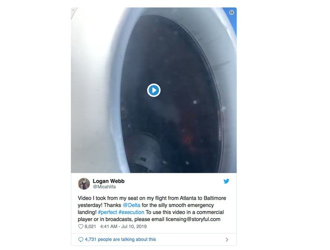 Có rất nhiều thứ bạn không muốn thấy khi nhìn ra ngoài cửa sổ máy bay và đây chắc chắn là điều nằm ở vị trí rất cao trong danh sách đó. Một video đăng tải trên Twitter bởi người dùng có nickname Logan Webb cho thấy cảnh một động cơ trên chuyến 1425 của hãng hàng không Delta đã gặp sự cố giữa không trung.