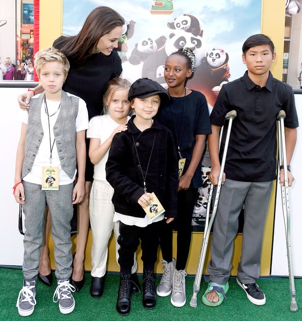 Các con của Pitt và Jolie Pitt gồm có Maddox 15 tuổi, Pax 12 tuổi, Zahara 11 tuổi, Shiloh 10 tuổi và cặp song sinh Knox và Vivienne 8 tuổi.