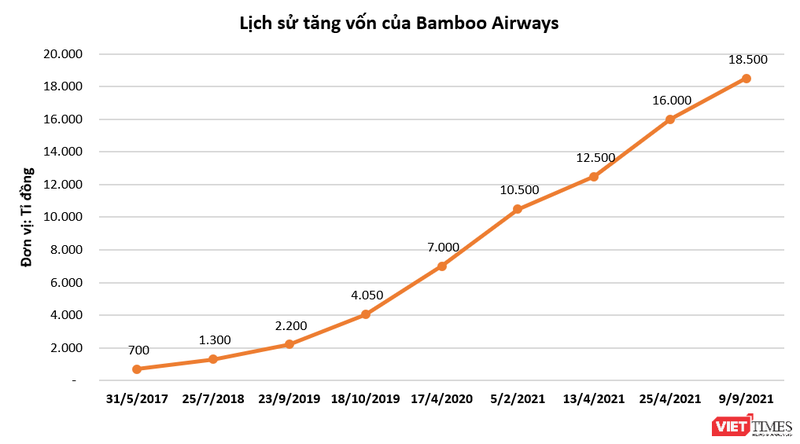 Cập nhật tới ngày 9/8/2021, vốn điều lệ của hãng hàng không này đạt mức 18.500 tỉ đồng - cao gấp 3,4 lần Vietjet và chỉ kém quy mô vốn của Vietnam Airlines khoảng 3.640 tỉ đồng.