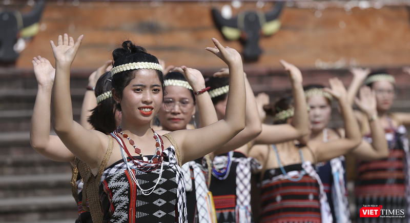 Trình diễn điệu múa Tung tung da dá đặc trưng của người Cơ Tu |