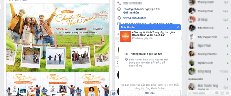Chatbot của Biti's Hunter trên Facebook - Ảnh chụp màn hình