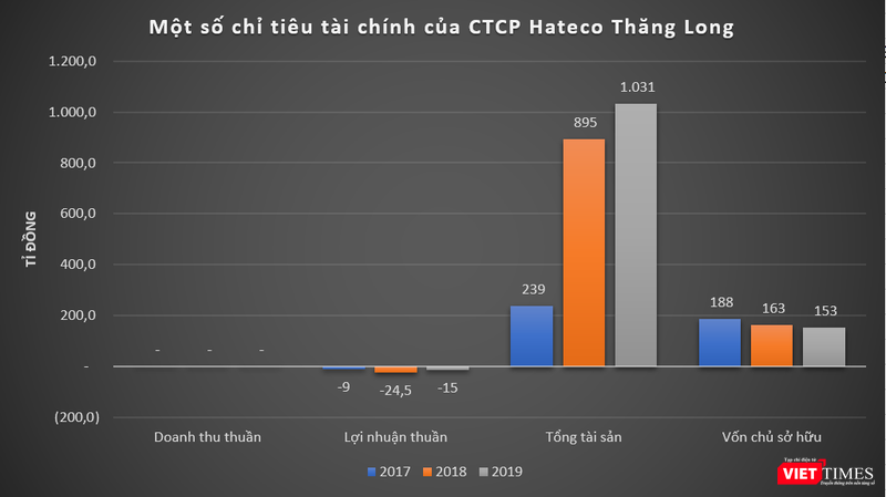 Dữ liệu của VietTimes cho thấy, các năm gần đây, Hateco Thăng Long không phát sinh doanh thu do vẫn trong quá trình phát triển dự án. Giai đoạn 2017 – 2019, công ty này báo lỗ thuần lần lượt 9 tỉ đồng, 24,5 tỉ đồng và 15 tỉ đồng.
