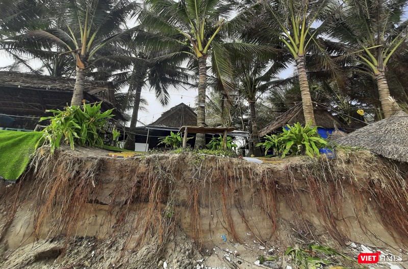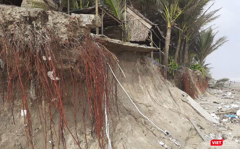 Cả bãi biển dài hàng km bị sóng đánh nham nhở |